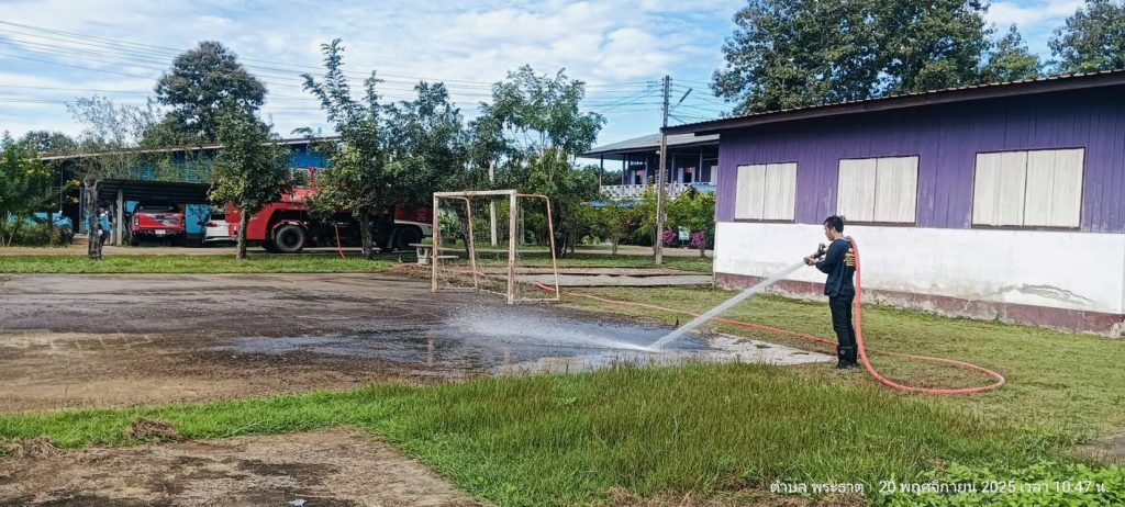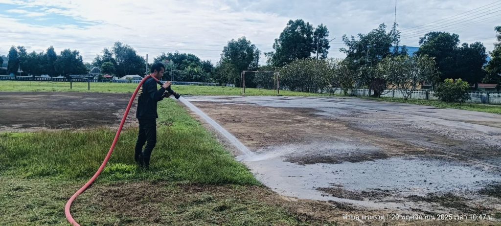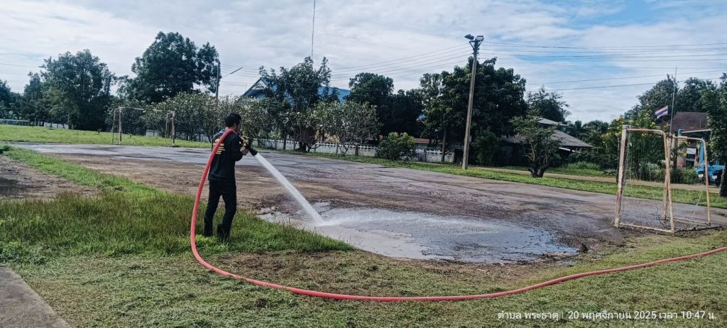 ขอกราบขอบพระคุณองค์การบริหารส่วนตำบลพระธาตุ นำรถฉีดน้ำมาล้างทำความสะอาดสนามฟุตซอล20/11/2568